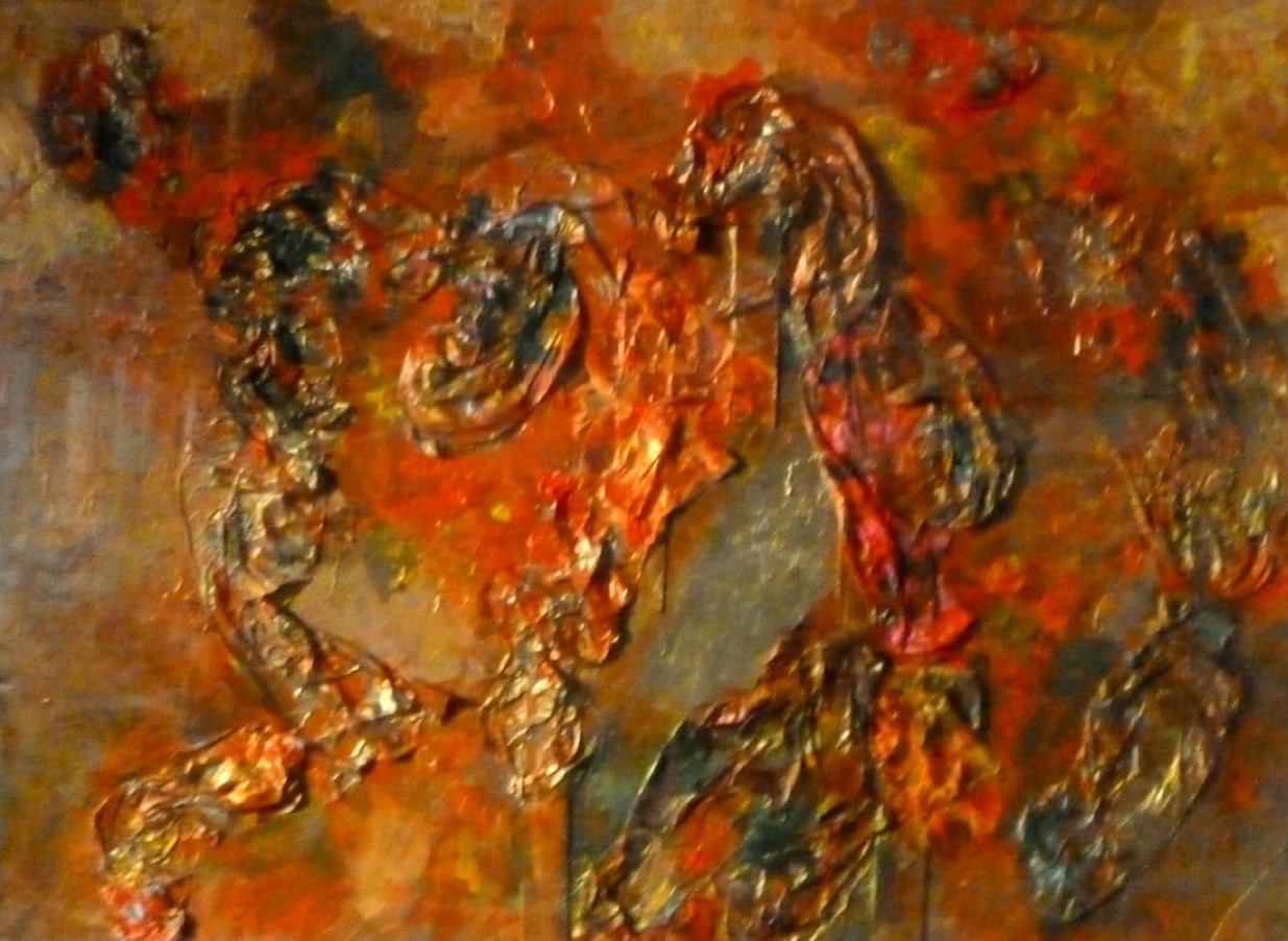 Hace dos años decidí salir un poco de la pintura figurativa e incursionar en lo abstracto,